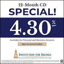 Finding Institution for Savings CD rates near me is easy with online resources or a quick branch visit. The official Institution for Savings website provides real-time rate updates, ensuring that prospective investors can view accurate APY offerings. Searching for local branches in cities such as Hingham or Sanford allows savers to access branch-specific promotions and take advantage of higher rates available in their area.